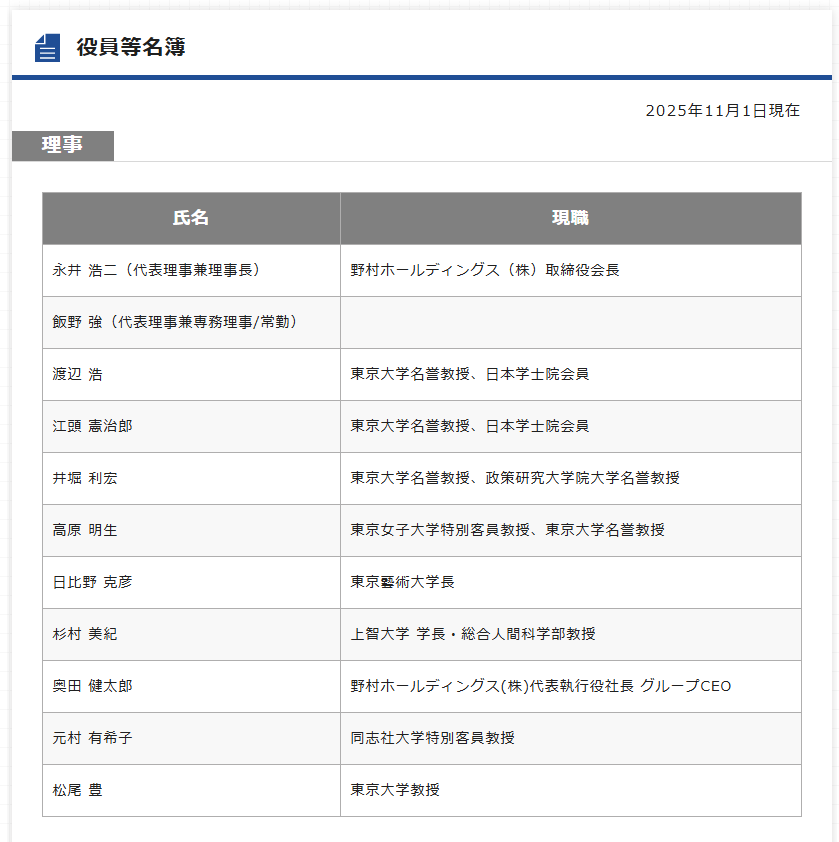 財団紹介2025/11/01役員等名簿を更新しました。